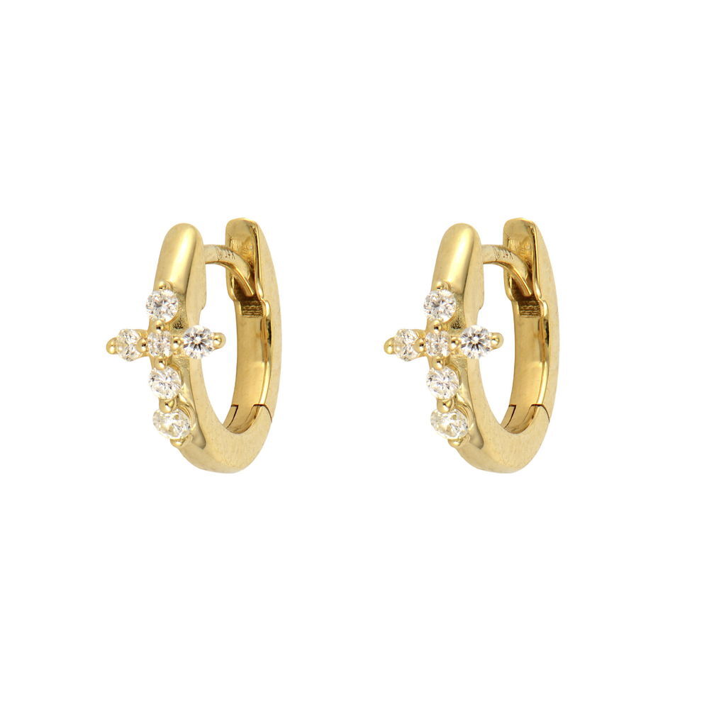 Delicate meets divine in this tiny cross hoop earring. Crafted in 14K yellow gold with diamond accents, it's perfect for everyday wear. Mix and match with other Three Stories pieces to create your own ear story.