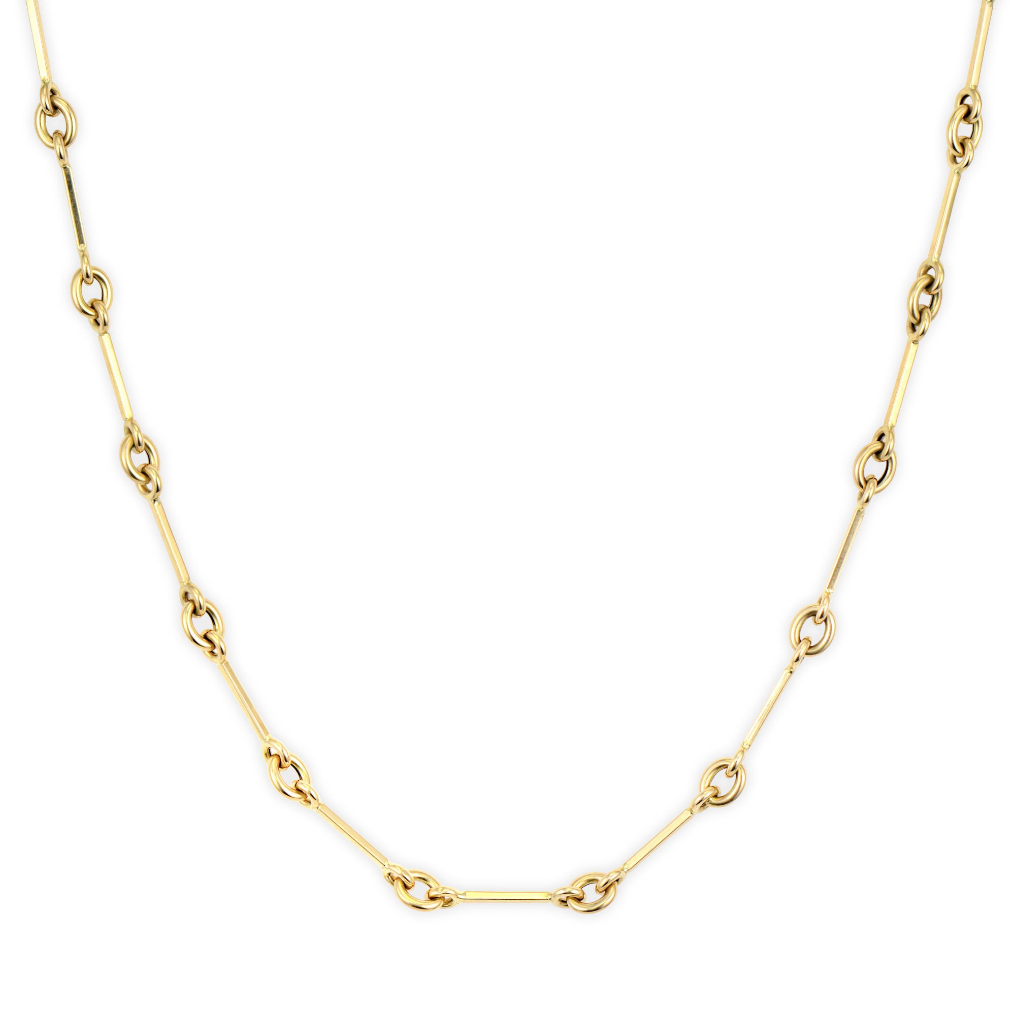 Classic equestrian-inspired horsebit links alternate with sleek bars in this sophisticated 14K yellow gold chain. Timeless elegance at 16" length, perfect for wearing solo or layering with your favorite Three Stories pendants.