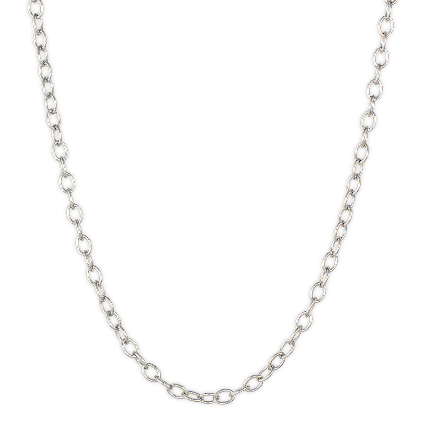 High-polish oval links create a sleek, dimensional chain in sterling silver. This 16" chain catches the light beautifully and adds modern elegance to any look. Perfect for your favorite Three Stories pendants or worn as a standalone statement. 20 Inches.
