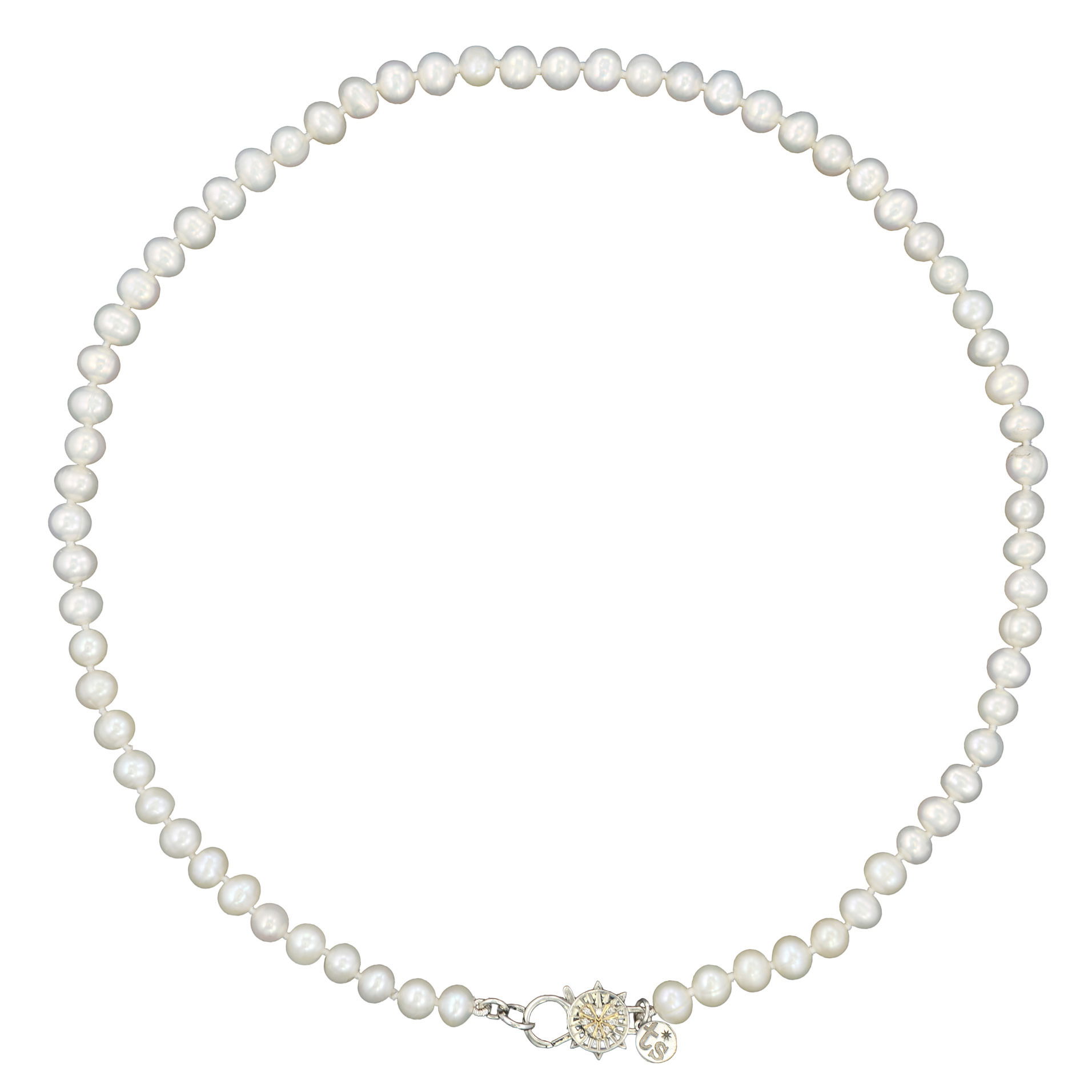 The clasp steals the spotlight - a 14K yellow gold diamond-studded heart connects to a diamond cross on a sterling silver clasp. This 18" strand of lustrous white pearls fastens with this meaningful closure. Faith, love, and timeless elegance in one beautiful piece.